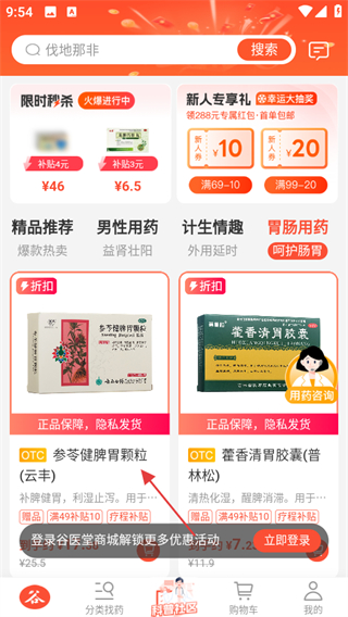 1、打開谷醫(yī)堂商城,點(diǎn)擊胃腸用藥,可進(jìn)入胃腸用藥分類頁面。