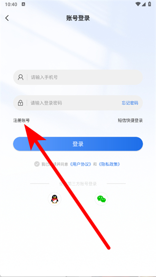 2、進(jìn)入賬號登錄頁面后,點擊注冊賬號,進(jìn)入注冊賬號頁面。