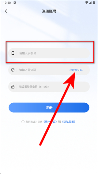 3、想注冊賬號頁面,輸入手機(jī)號碼,點擊獲取驗證碼,并輸入驗證碼。