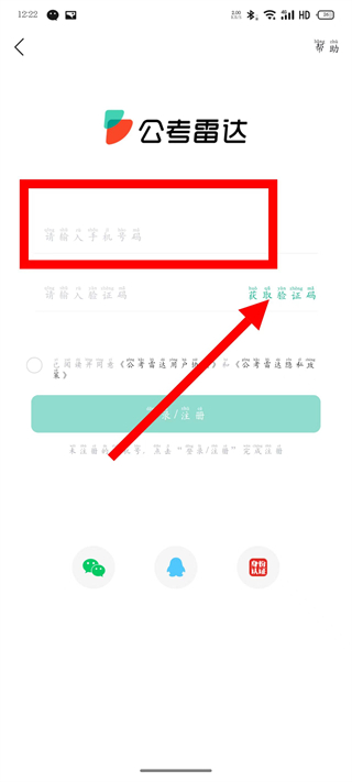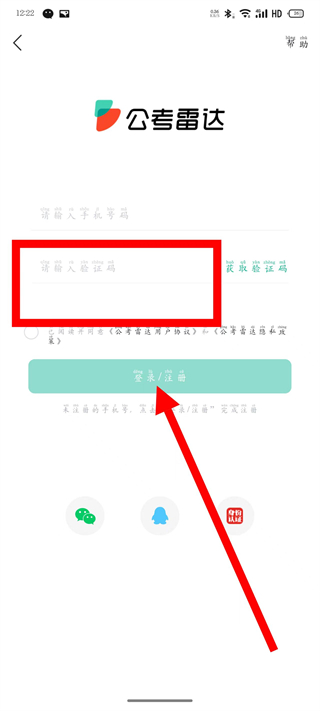 4、輸入收到的短信驗(yàn)證碼,勾選后,點(diǎn)擊登錄注冊按鈕,完成賬號登錄。