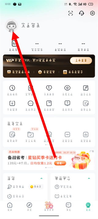 2、在個(gè)人中心頁面,點(diǎn)擊頭像區(qū)域的點(diǎn)擊登錄,進(jìn)入登錄頁面。