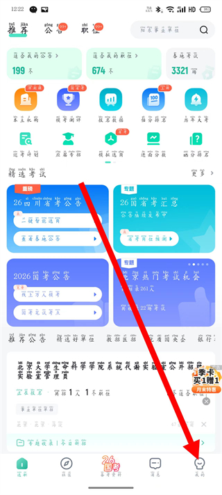 1、打開公考雷達(dá),點(diǎn)擊底部導(dǎo)航欄的我的,進(jìn)入個(gè)人中心頁面。