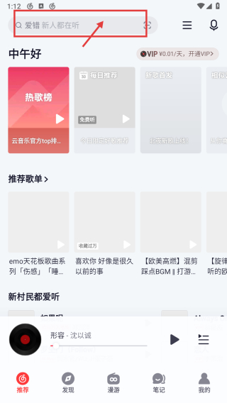 1、打開(kāi)音樂(lè)類應(yīng)用,點(diǎn)擊頂部搜索框,進(jìn)入搜索頁(yè)面。