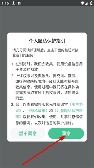 1、在個(gè)人隱私保護(hù)指引彈窗中,點(diǎn)擊同意,進(jìn)入登錄注冊(cè)頁面。