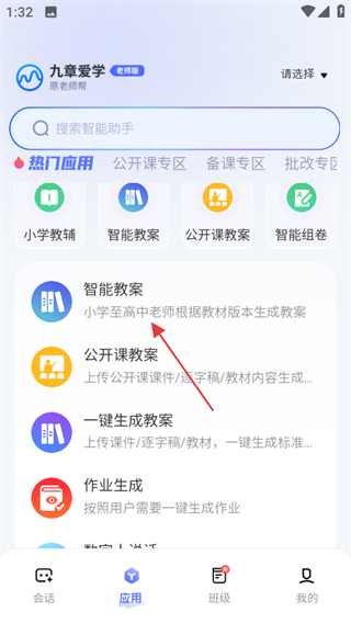 2、在應(yīng)用頁(yè)面,點(diǎn)擊智能教案可進(jìn)入智能教案設(shè)置頁(yè)面。