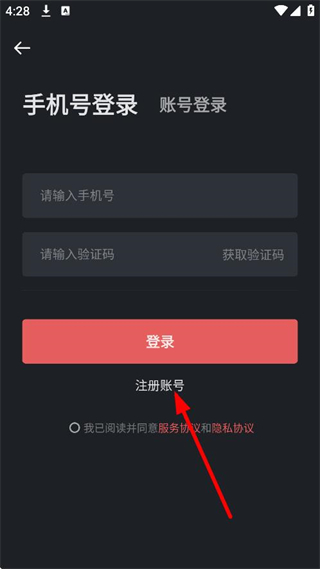 2、在登錄的頁(yè)面,點(diǎn)擊注冊(cè)賬號(hào),進(jìn)入注冊(cè)頁(yè)面。