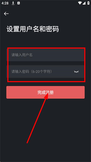 4、輸入用戶名和密碼后點(diǎn)擊完成注冊(cè),完成賬號(hào)注冊(cè)操作。