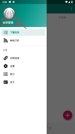 2、在側(cè)邊欄中,點擊會員登錄選項,進入會員頁面。
