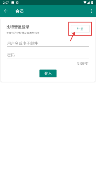 3、在會員頁面,點擊注冊按鈕,進入注冊頁面。
