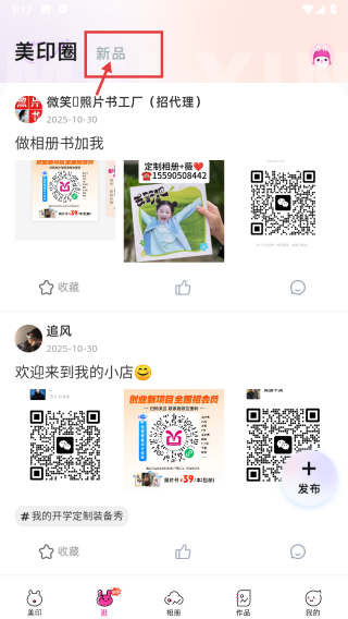 2、在美印圈頁面,點擊頂部新品選項,查看新品首發(fā)內(nèi)容。