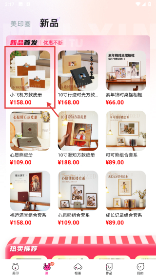 3、在新品首發(fā)列表里,找到小飛機方款皮冊商品,點擊進(jìn)入詳情頁。
