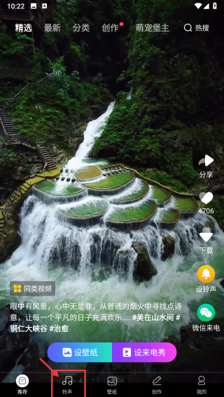 1、打開鈴聲類APP,點(diǎn)擊底部鈴聲選項(xiàng),進(jìn)入鈴聲板塊頁(yè)面。