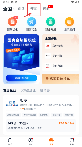 2、在發(fā)現(xiàn)板塊頁面,點擊漲薪選項,進入漲薪相關內容頁面。