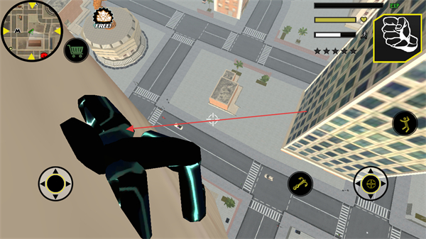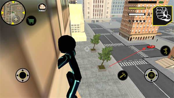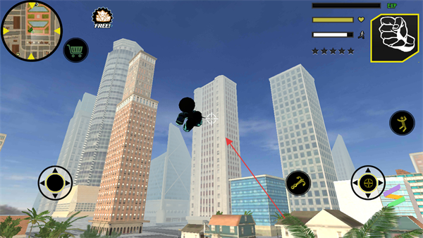 1、操控火柴人從高空降落,利用左側(cè)搖桿調(diào)整移動(dòng)方向,在城市建筑群間穿梭。