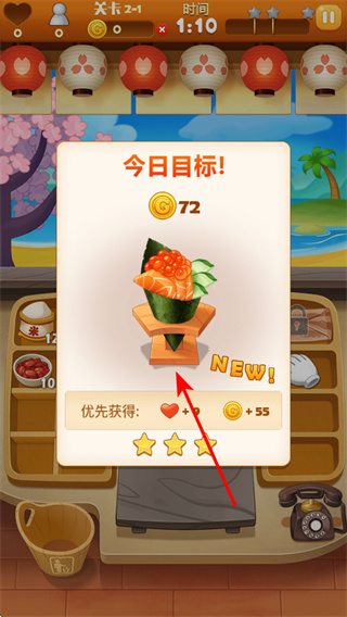 1、在關卡開始時,留意今日目標,明確當前關卡需獲取的金幣目標及優(yōu)先獲得的獎勵,愛心和金幣,方向推進關卡進程。