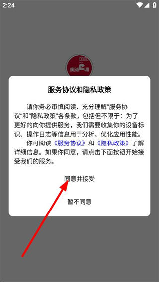 1、在服務(wù)協(xié)議和隱私政策彈窗,點擊同意,進入登錄頁面。