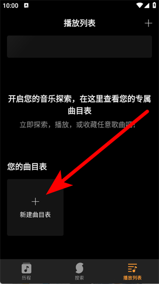 2、在播放列表頁面,點(diǎn)擊新建曲目表。