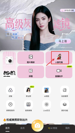 1、打開攝影類APP首頁,點(diǎn)擊人像寫真選項(xiàng),進(jìn)入寫真風(fēng)格選擇頁面。