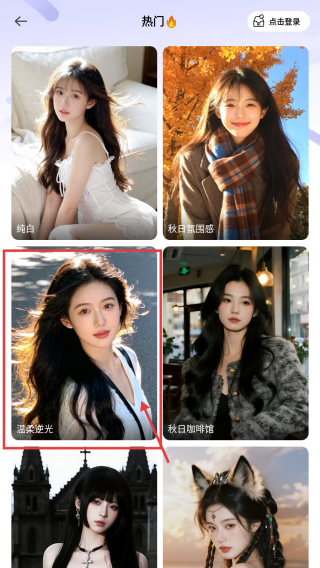 3、在熱門寫真風(fēng)格列表中,點(diǎn)擊溫柔逆光風(fēng)格條目,進(jìn)入風(fēng)格詳情頁。
