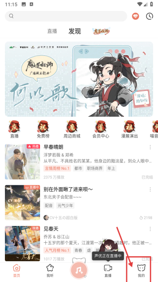 1、打開音頻類APP首頁,點擊底部我的選項,進入個人中心頁面。