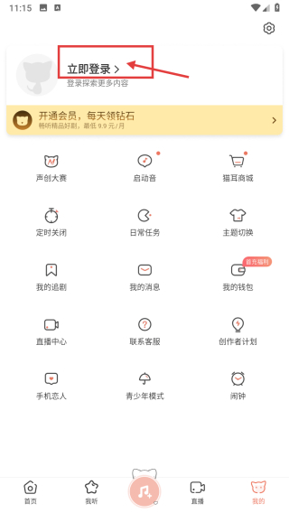 2、在個人中心,點擊立即登錄選項,進入登錄方式選擇頁面。