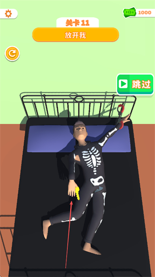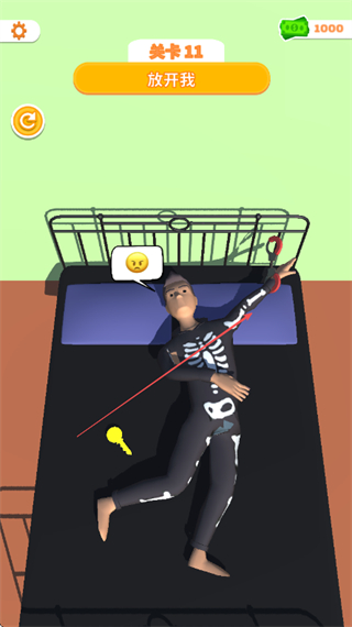 1、在關(guān)卡11放開我中,觀察人物被束縛的狀態(tài),找到黃色鑰匙。