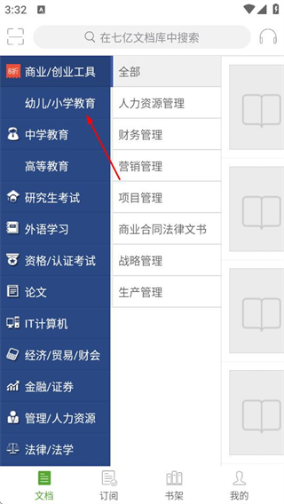 2、選擇幼兒小學(xué)教育分類,進入該分類下的子分類列表。