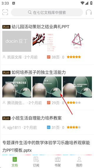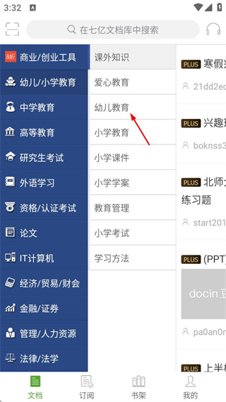 3、選擇幼兒教育子分類,進入幼兒教育文檔列表頁面。