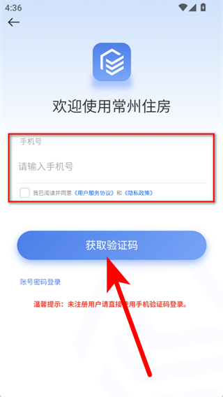 3、輸入手機(jī)號(hào),勾選后,點(diǎn)擊獲取驗(yàn)證碼。