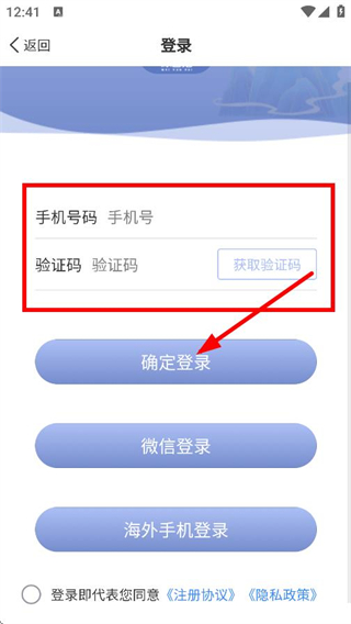 3、輸入手機號,獲取驗證碼并輸入后,點擊確定登錄,完成賬號登錄操作。