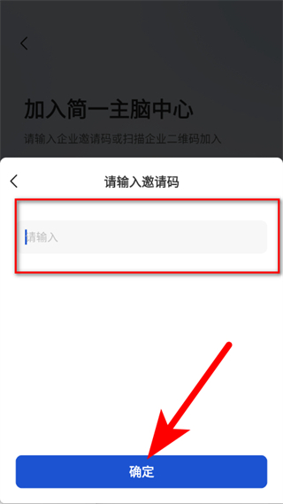 4、在邀請碼輸入頁面,輸入企業(yè)邀請碼后,點擊確定,完成加入企業(yè)操作。