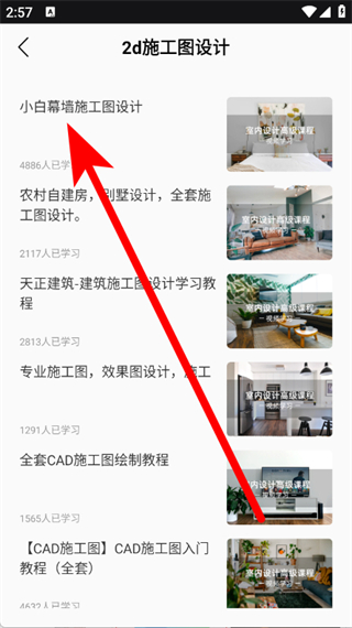 3、在2D施工圖設(shè)計(jì)頁面,點(diǎn)擊選擇小白幕墻施工圖設(shè)計(jì)課程。