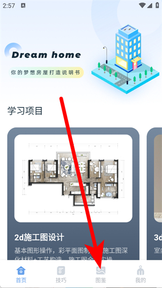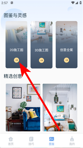 2、在圖鑒頁面的圖鑒與靈感板塊中,點(diǎn)擊2D施工圖,進(jìn)入頁面。
