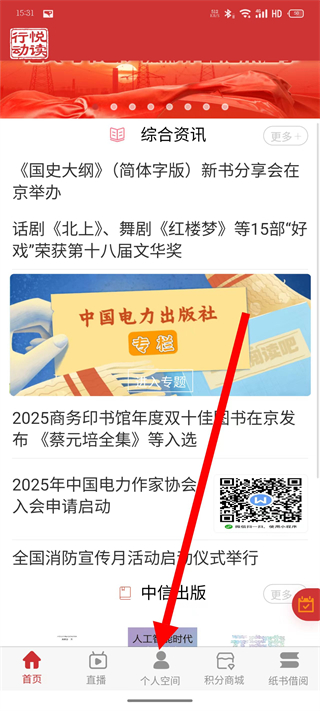 1、打開書香國網(wǎng),點擊底部導航欄個人空間,進入個人頁面。