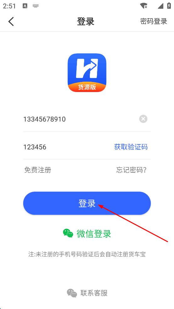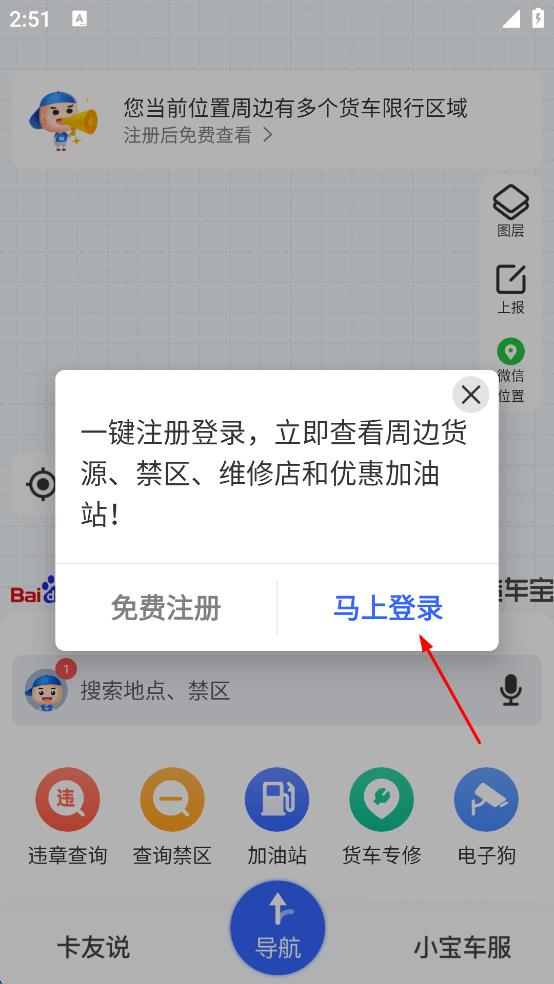1、打開貨車寶APP,在彈出的提示框中,點擊“馬上登錄”選項。