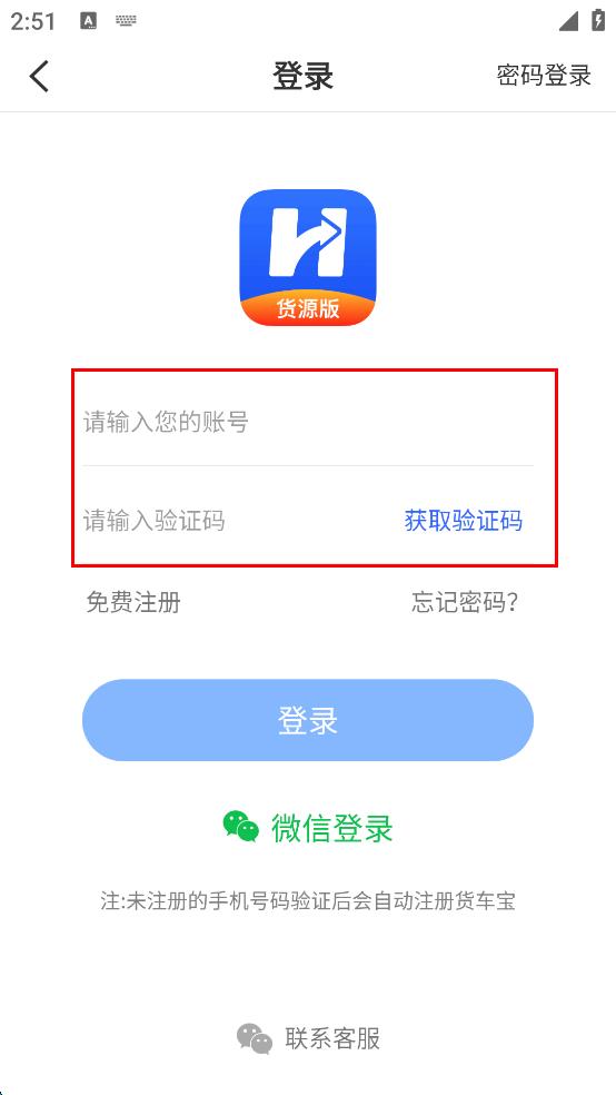 3、在“請輸入您的賬號”欄輸入要登錄的賬號,接著點擊“獲取驗證碼”,并在“請輸入驗證碼”欄輸入收到的驗證碼。