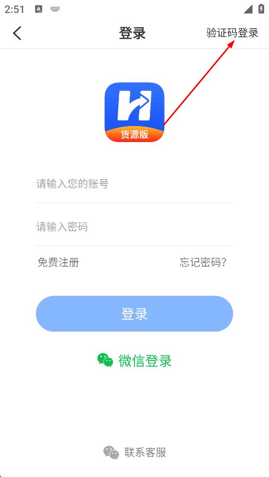 2、進入登錄頁面,點擊頁面右上角“驗證碼登錄”按鈕。