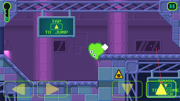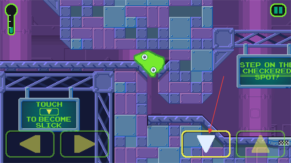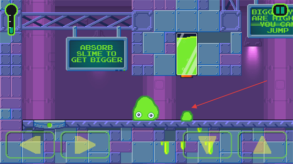 2、通過點擊右下角的向上箭頭,使粘液跳上臺階等障礙物。
