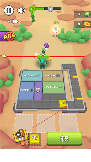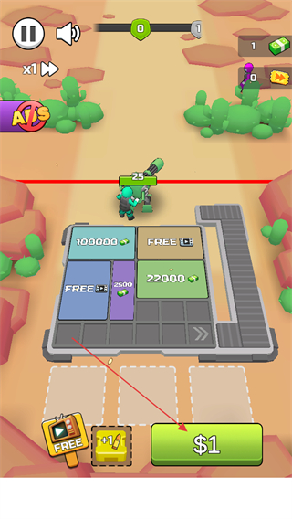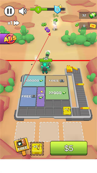 1、點(diǎn)擊下方綠色的美元按鈕如$1、$5,在棋盤(pán)上放置黃色的子彈生成器。