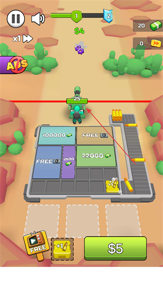 4、持續(xù)放置子彈生成器,升級(jí)炮臺(tái),增強(qiáng)火力,應(yīng)對(duì)越來(lái)越多的敵人,不斷推進(jìn)游戲進(jìn)程。