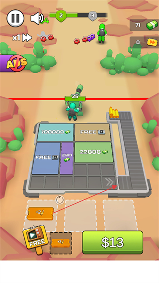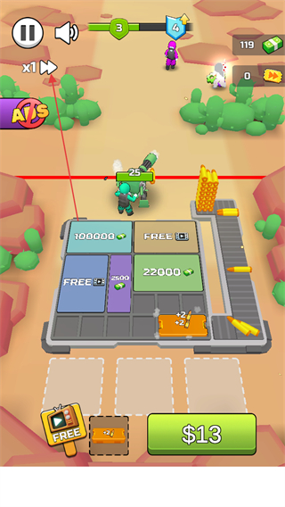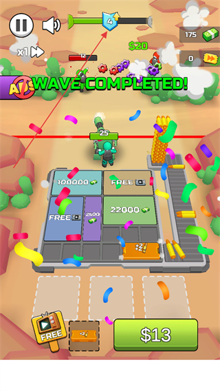 2、花費(fèi)金幣如$13在棋盤(pán)上放置更多子彈生成器,增加子彈產(chǎn)量,強(qiáng)化火力。