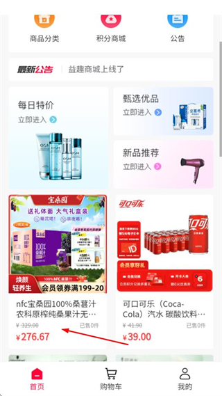 1、在益趣首頁(yè),選擇感興趣的商品,進(jìn)入商品詳情頁(yè)面。