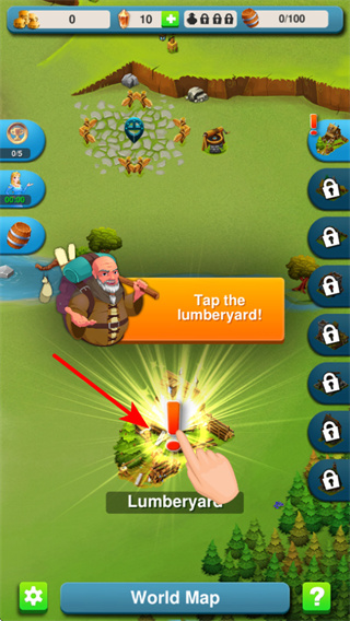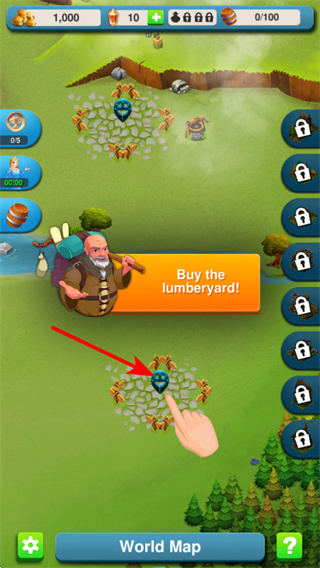 1、在游戲中,點擊資源點解鎖新的經(jīng)營區(qū)域,區(qū)域解鎖是拓展產(chǎn)業(yè)的關(guān)鍵操作,解鎖后可開啟伐木場等新建筑,資源獲取渠道。