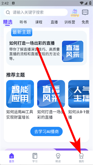 1、打開匯播學(xué)堂,點擊導(dǎo)航底部導(dǎo)航欄我的,進入個人頁面。