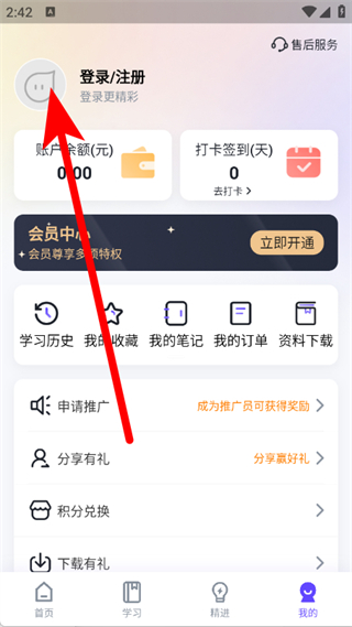 2、在個人頁面,點擊登錄注冊頭像,進入登錄頁面。