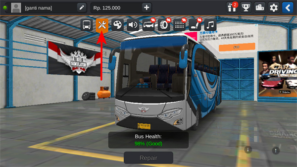 2、點(diǎn)擊維修按鈕保養(yǎng)巴士,巴士保養(yǎng)是維持性能的核心步驟,保養(yǎng)后可提升巴士的健康度,確保在運(yùn)營過程中不會因故障拋錨。