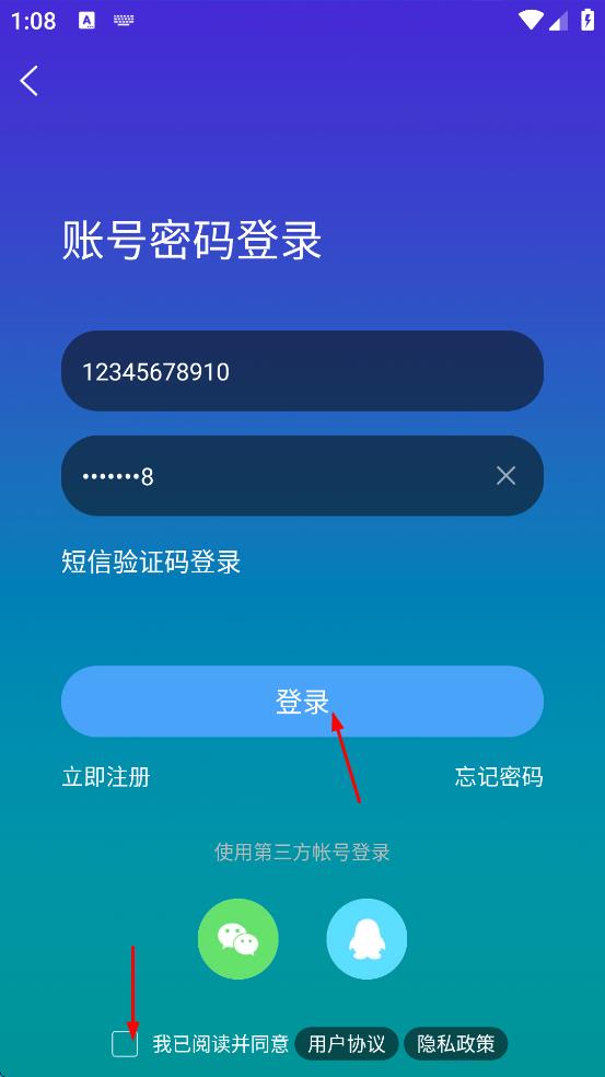 4、勾選“我已閱讀并同意用戶協(xié)議、隱私政策”,點擊“登錄”按鈕,完成登錄操作。