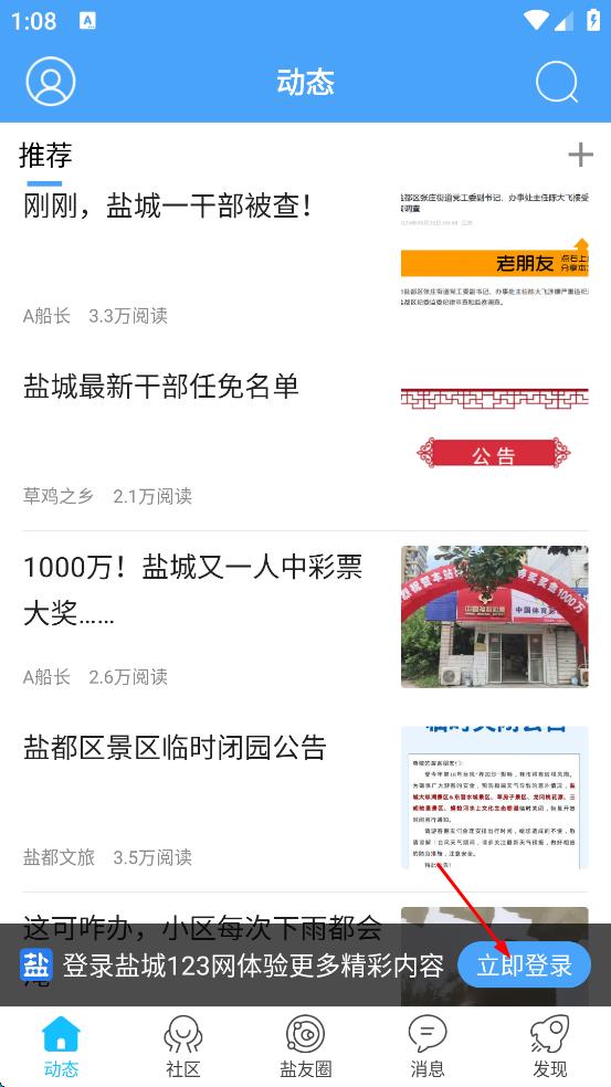 2、在動態(tài)頁面,點擊“立即登錄”,進入賬號密碼登錄頁面。