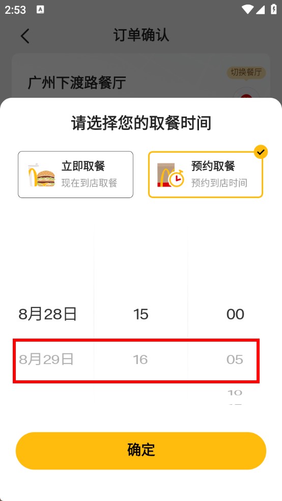 4、在預(yù)約取餐界面,選定早餐供應(yīng)時段內(nèi)的日期和時間,點(diǎn)確定并完成支付,即可預(yù)約早餐。