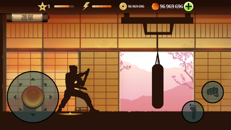 游戲操作簡(jiǎn)單,左側(cè)方向建控制移動(dòng)、跳躍、下蹲、翻滾等動(dòng)作,右側(cè)為攻擊按鈕。游戲主角猶如一個(gè)江湖小蝦,起初只會(huì)簡(jiǎn)單的拳腳功夫。